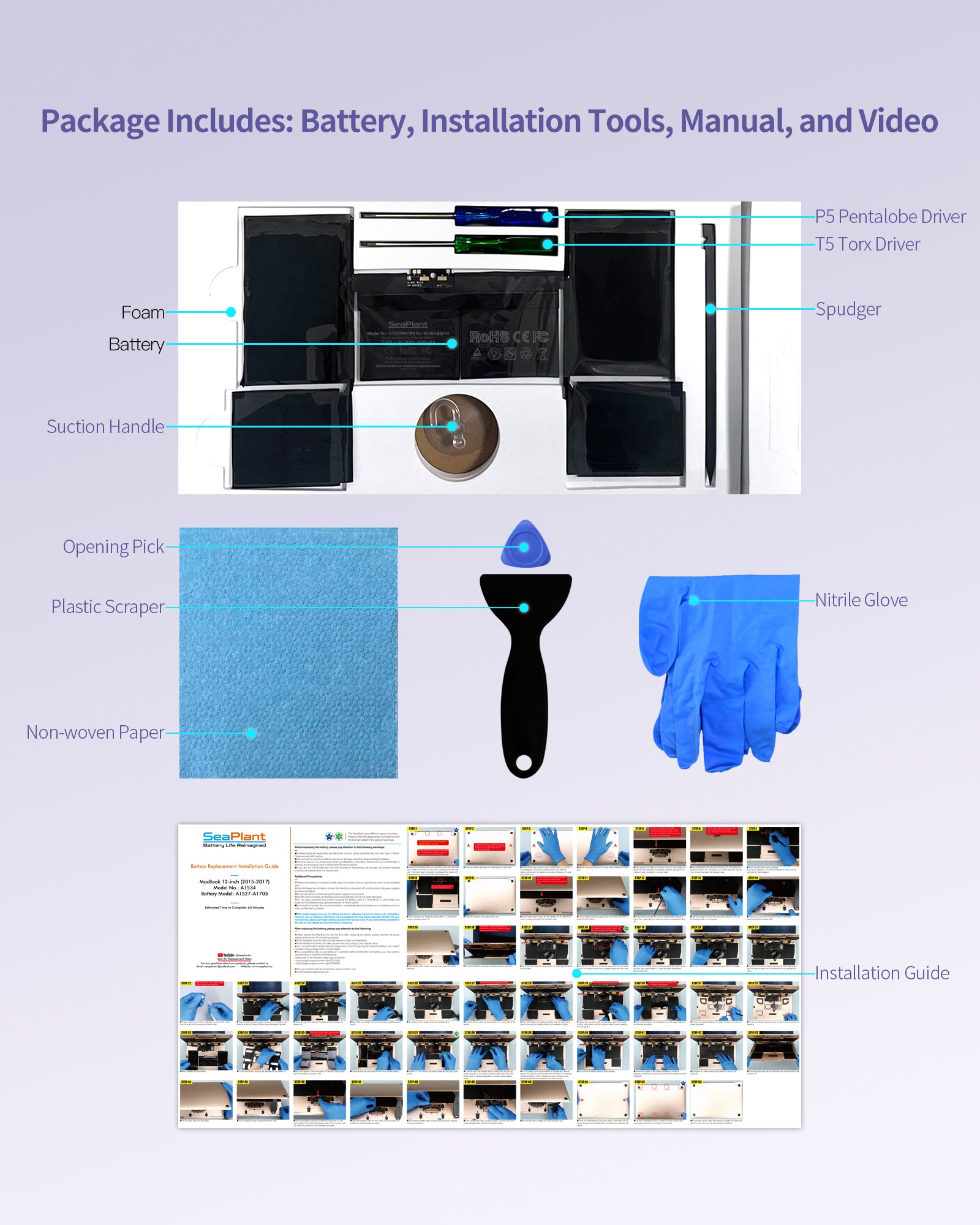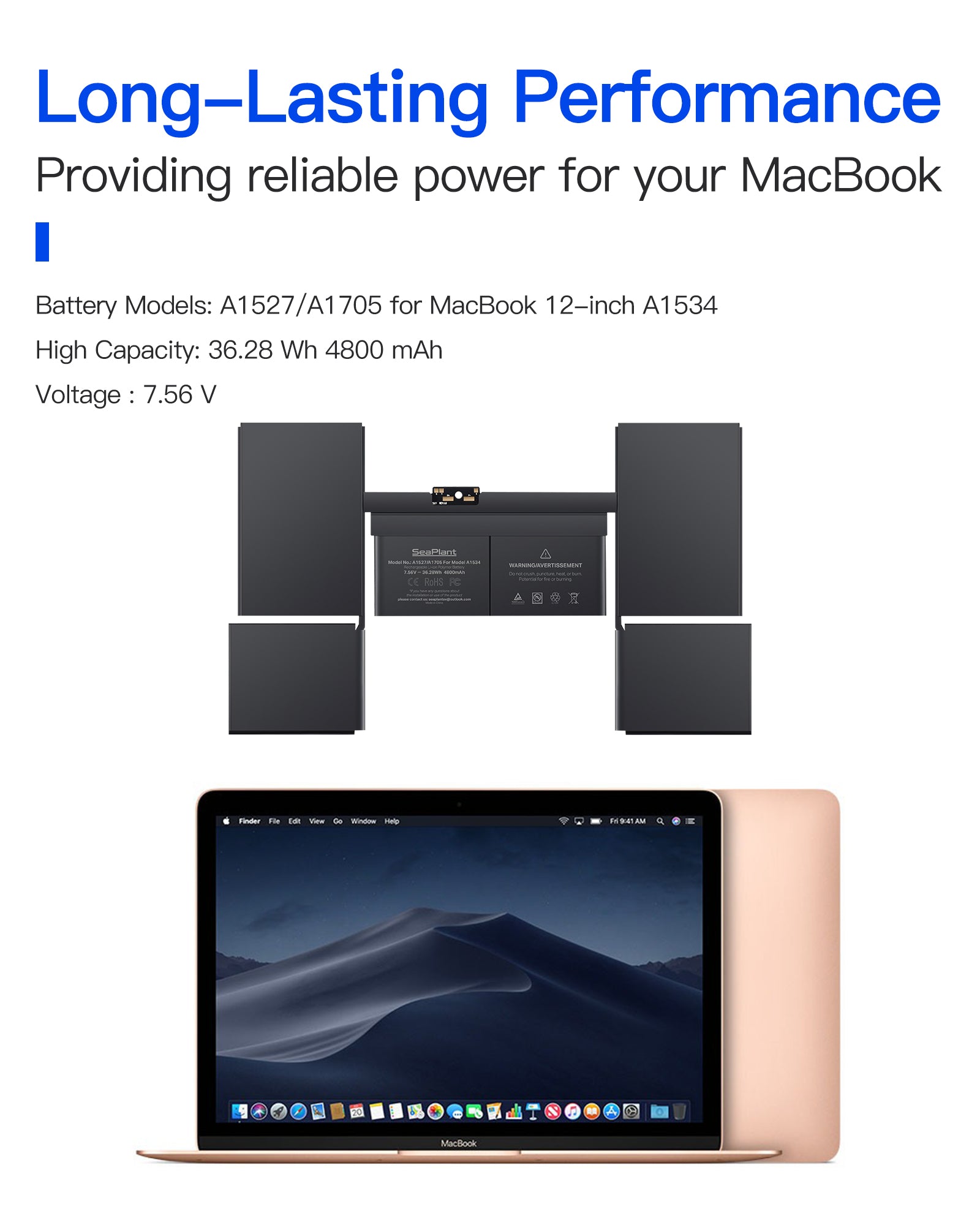 Macbook A1534 Battery Replacement for 12-inch 2015,2016,2017 A1527/A1705 Battery